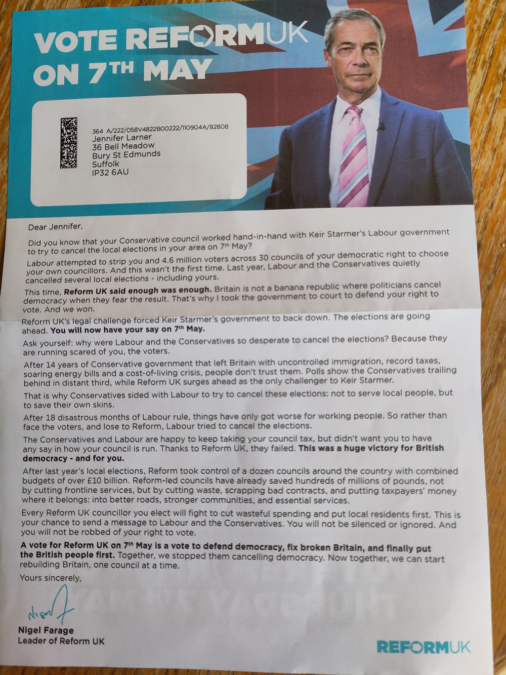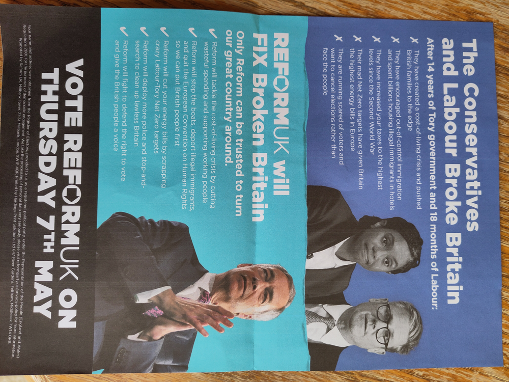 Reform UK leaflet
