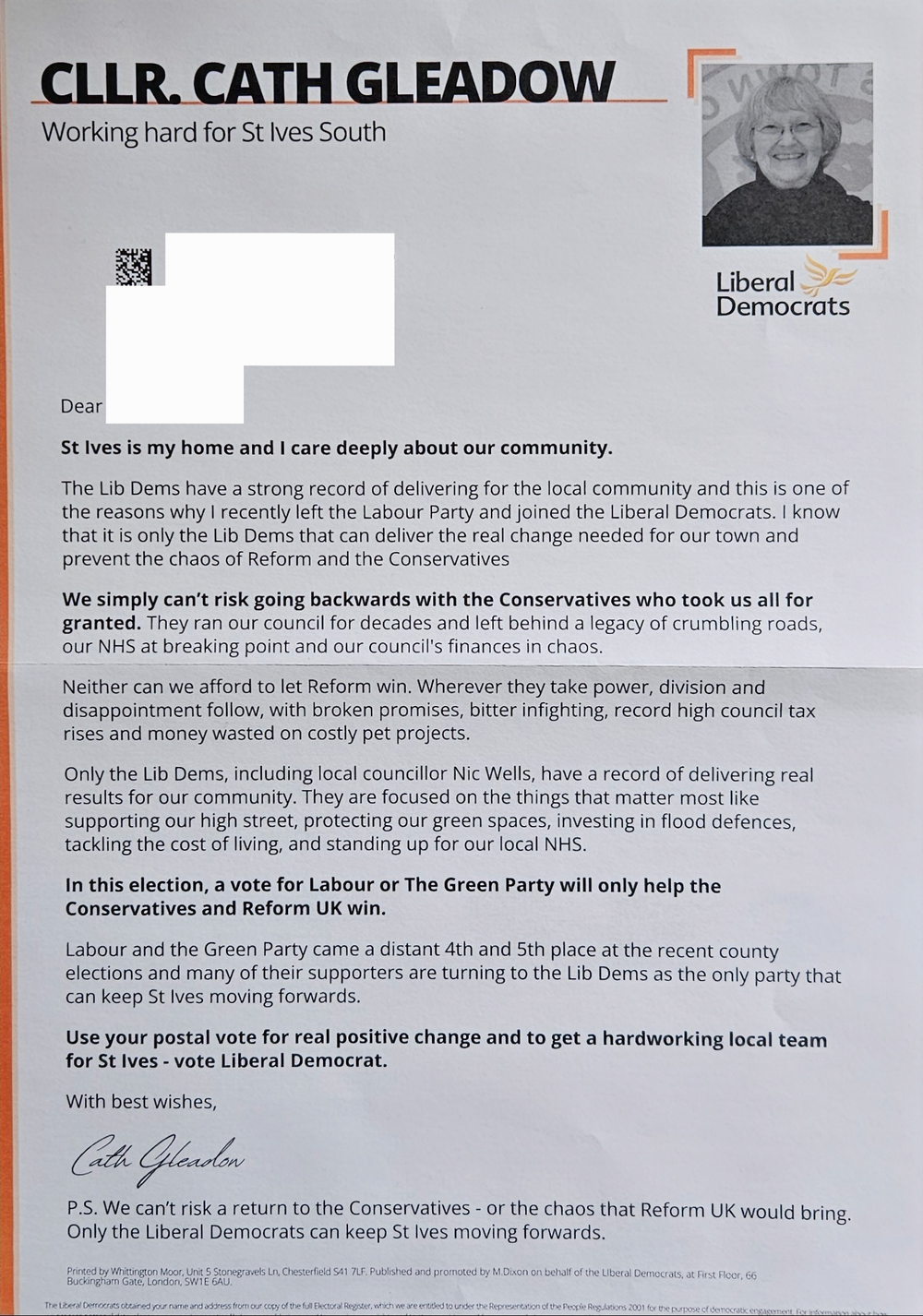 Liberal Democrats leaflet