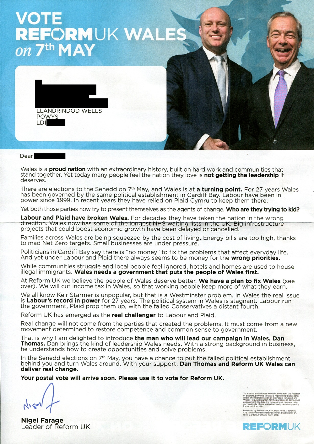 Reform UK leaflet