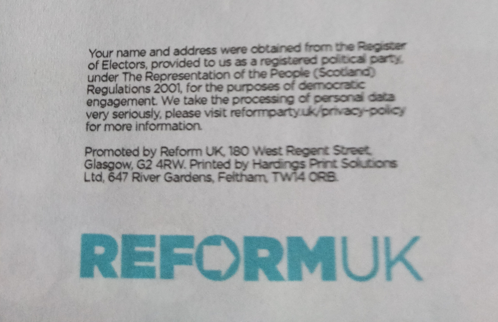 Reform UK leaflet