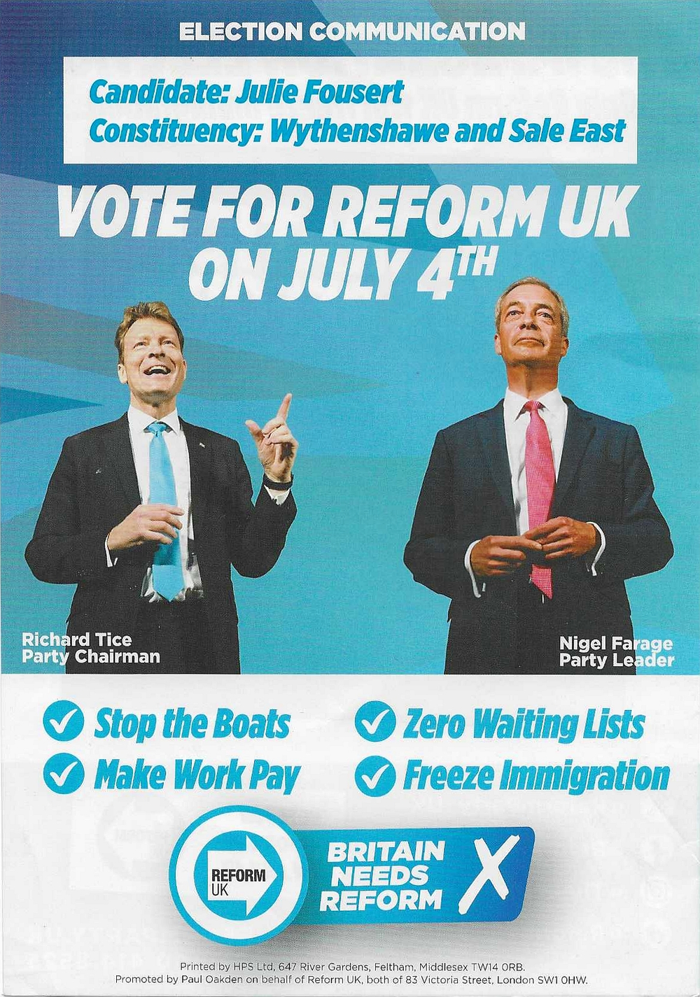 Reform UK leaflet
