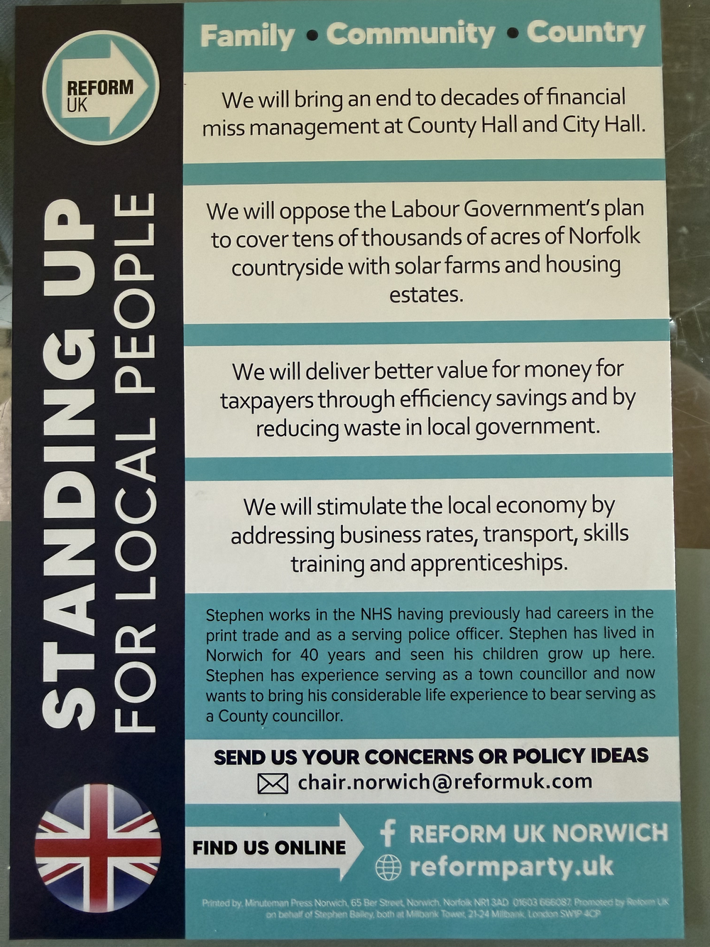 Reform UK leaflet