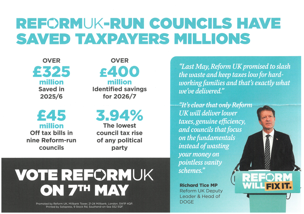 Reform UK leaflet