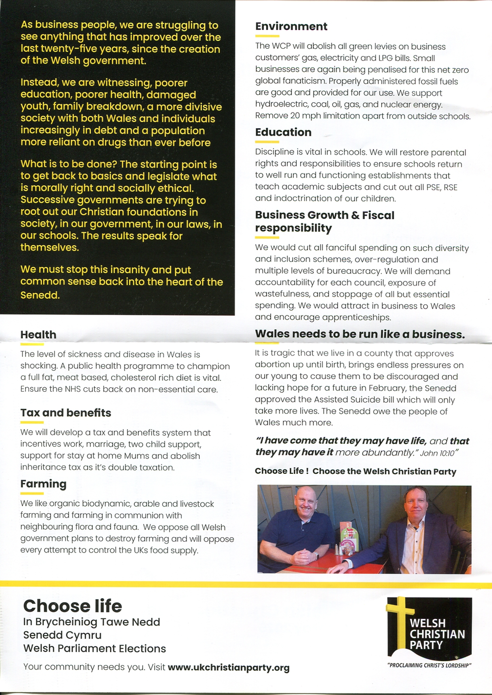Christian Party "Proclaiming Christ's Lordship" leaflet