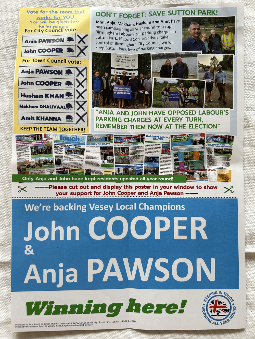 Conservative and Unionist Party leaflet