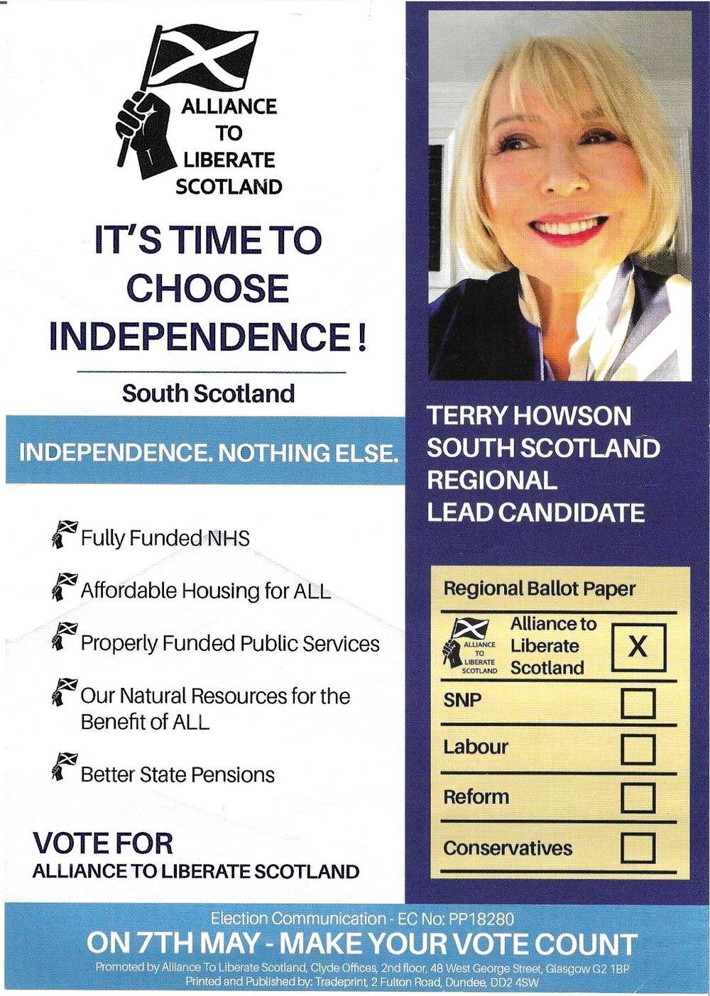 Alliance to Liberate Scotland leaflet