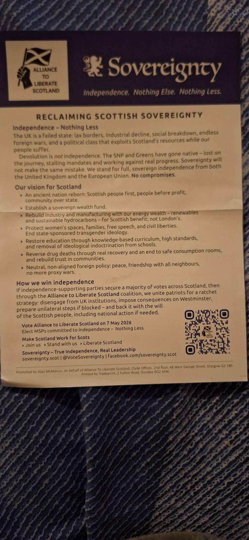 Alliance to Liberate Scotland and Sovereignty leaflet
