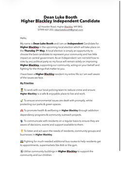 Leaflets sent by Dean Luke Booth